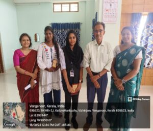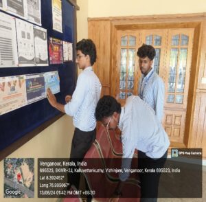 The week concluded with a poster-making competition aimed at fostering awareness about the detrimental effects of ragging. Approximately 20 students participated, showcasing their artistic skills and commitment to the cause. The posters conveyed strong anti-ragging messages and reflected the creativity and thoughtfulness of the participants. Safa Fathima of S3 BA English Language and Literature won first prize, while Adithya A. S. of S1 BBA secured the second position. A prize distribution ceremony was held in the Principal’s room, where Dr. Ramesh Chandran, Head of the Department of Social Work, awarded the winners and emphasized the importance of student involvement in such initiatives.