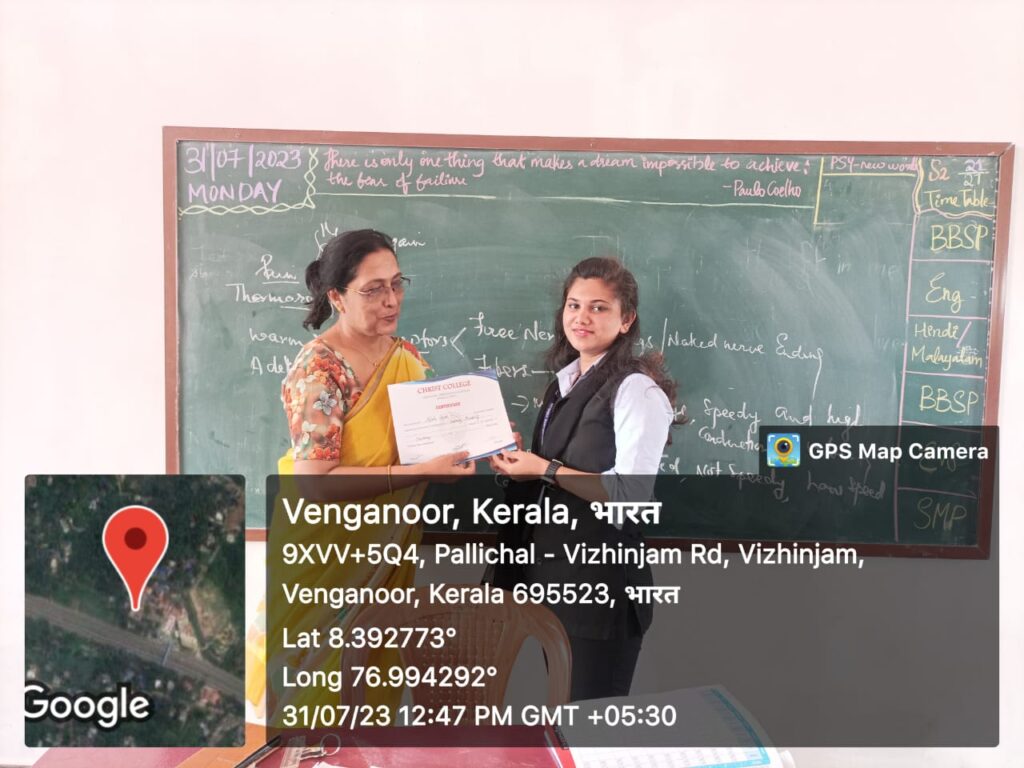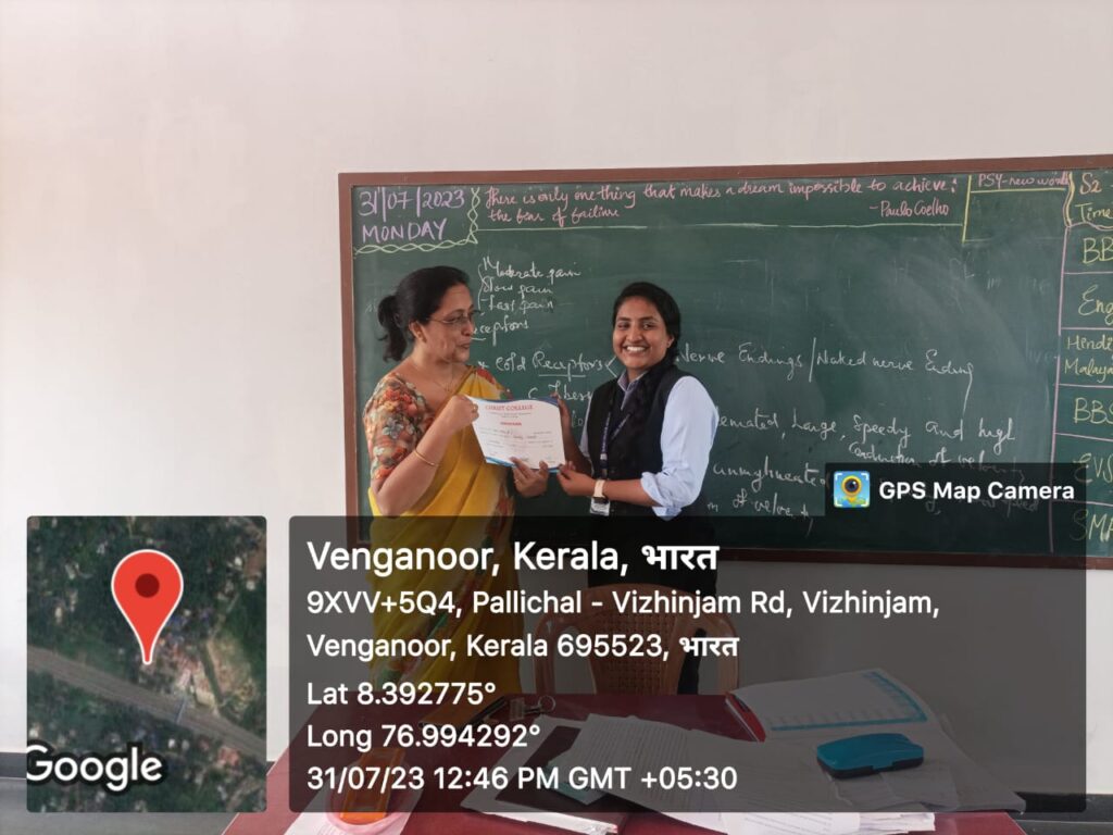 The department of Psychology does not just focus on the exploration and functioning of the human mind but also emphasizes on the hurdles it faces to adapt to the functional world of humans. The faculty of Psychology of Christ College, Vizhinjam has put forth one such attempt to understand the hurdles of such human dimensions. The Department Of Psychology conducted Certificate Course of “Learning Disabilities” to better comprehend such hurdles. Course Inauguration Ceremony, held through online mediums on 2 May, 2023, at 4 pm, gave a brief introduction of the course syllabus and examination criteria. Students of semester two B.Sc Psychology batch attended the ceremony hosted and led by Mrs. Meera Raj BM, HOD Department Of Psychology along with Mrs. Anu Abraham, Assistant Professor, Department Of Psychology. Dr Usha Kumari, Staff Secretary, Christ College Vizhinjam also graced the inauguration ceremony with her blessed presence.