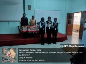 The Gram Panchayat of Venganoor, in association with the NSS, Christ College Vizhinjam, organized a training program for the students on July 30, 2024, in the Audio-Visual room. The program was coordinated by Ms. Raji, a representative of Venganoor Gram Panchayat, with the help of Technical Assistant, Ms. Anju.