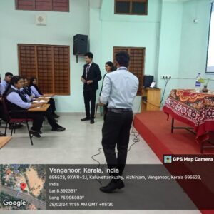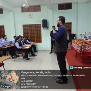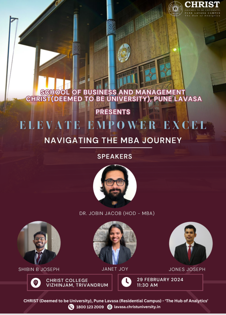 The Department of Management Studies, Christ (Deemed to be University), Pune, conduct a seminar on the prospects of the MBA program on Thursday the 29th of February 2024. The Resource person who gave an orientation to the students was Mr Jobin Jacob , the Head of the department for MBA program in Christ (Deemed to be University) Pune. Three students from Christ University accompanied him (Mr Shibin B Joseph, (Student – First Year MBA),Janet Joy, (Student – Second Year MBA),Mr. Jones Joseph (Student – Second Year MBA)). The session was attended by 41 students of Second Semester BBA and 29 students of fourth semester BBA.