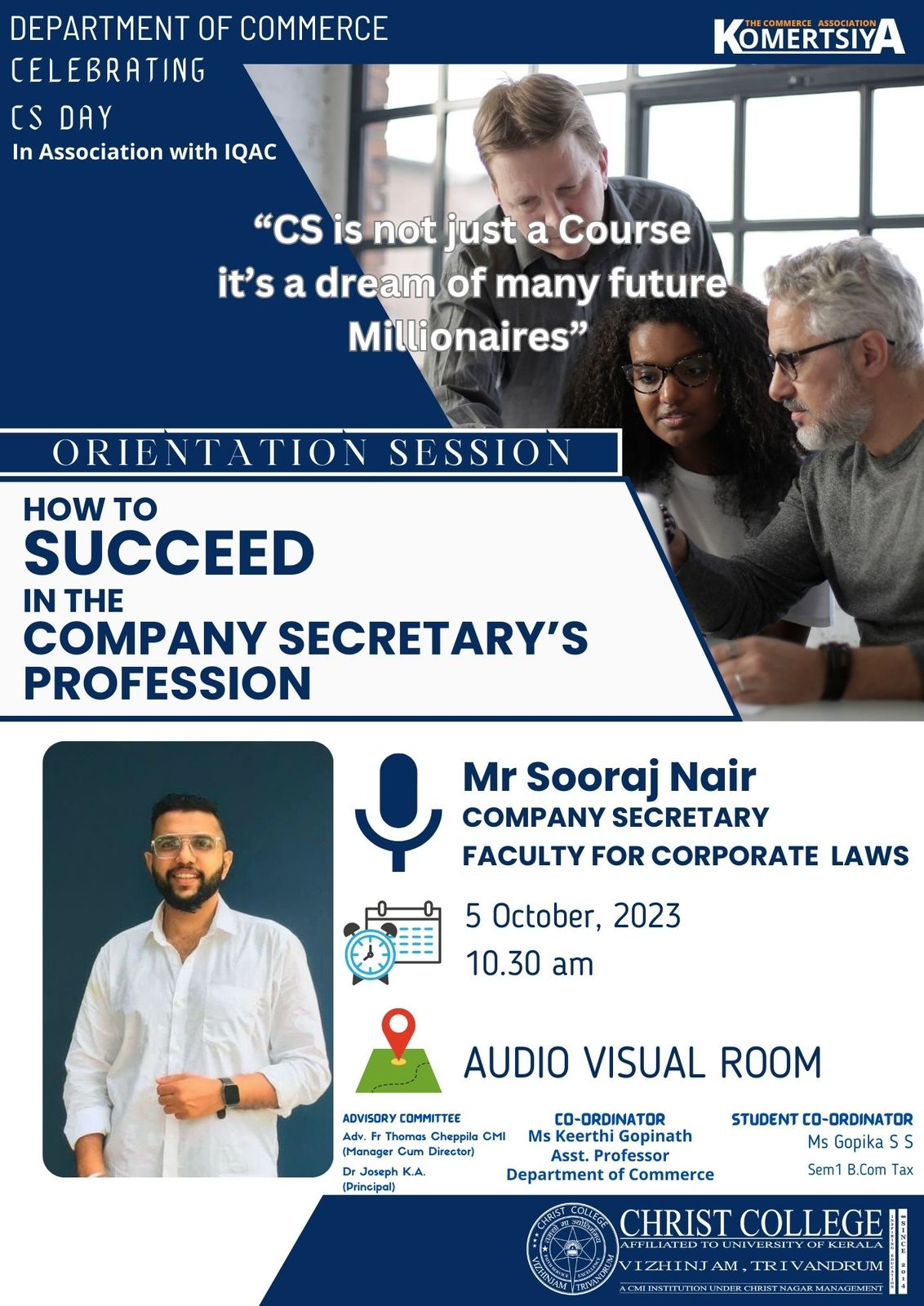 COMPANY SECRETARY DAY CELEBRATION HOW TO SUCCEED IN THE COMPANY SECRETARY’S PROFESSION The session was wonderfully conducted by Mr. Sooraj S Nair, Company Secretary. The
