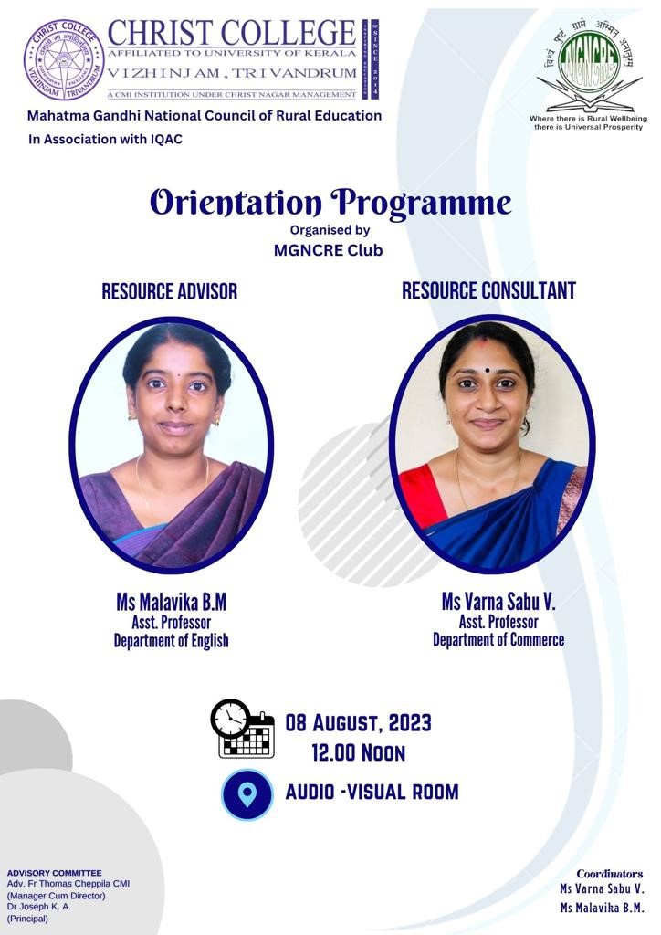The Career Guidance and Placement Cell of Christ College, Vizhinjam in association with IQAC, has organized an orientation program for students conducted on August 09,