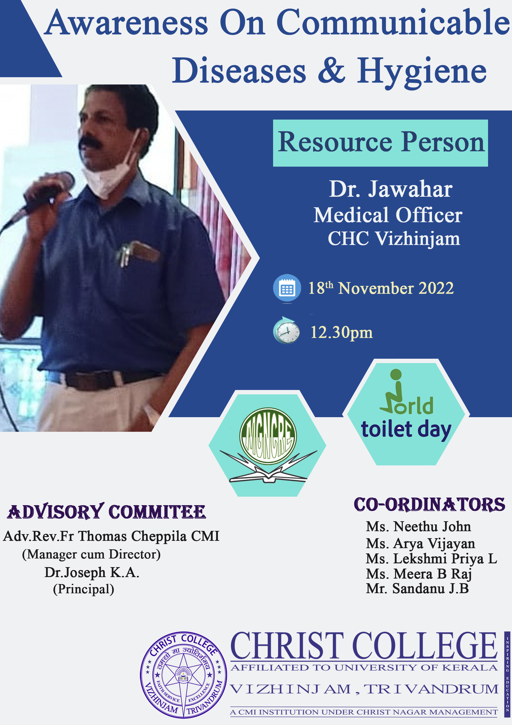 On the 18th of November, 2022, an awareness class was commenced at Christ College Vizhinjam in association with world toilet day. Held at the venue