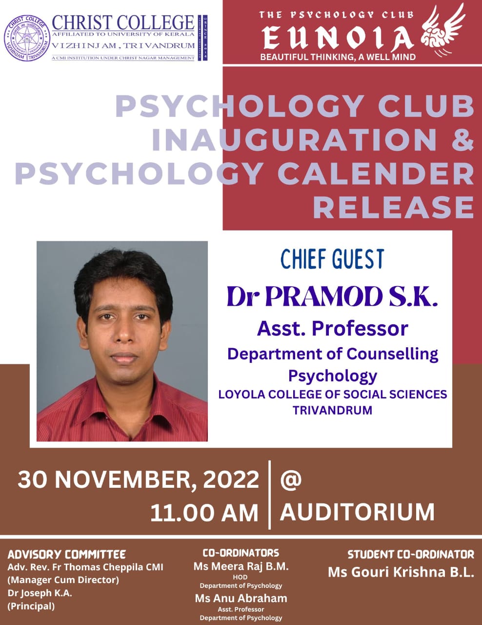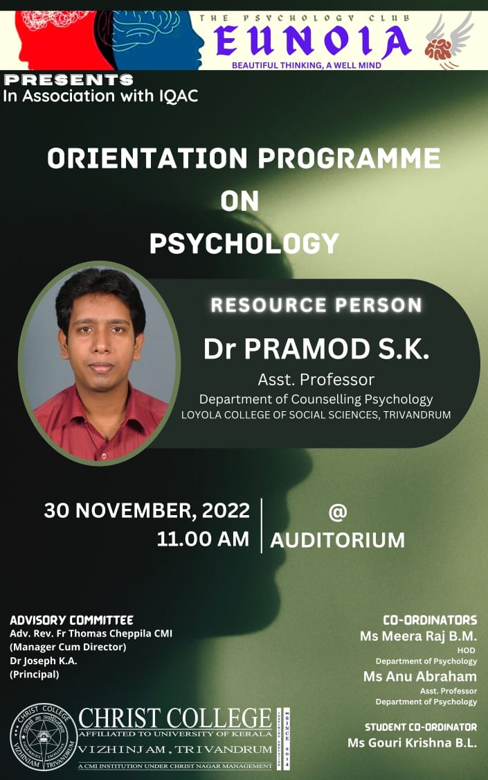 30th of November, 2022 would indeed go down as an auspicious experience for the budding Psychologists of Christ College, Vizhinjam. Students belonging to the first batch