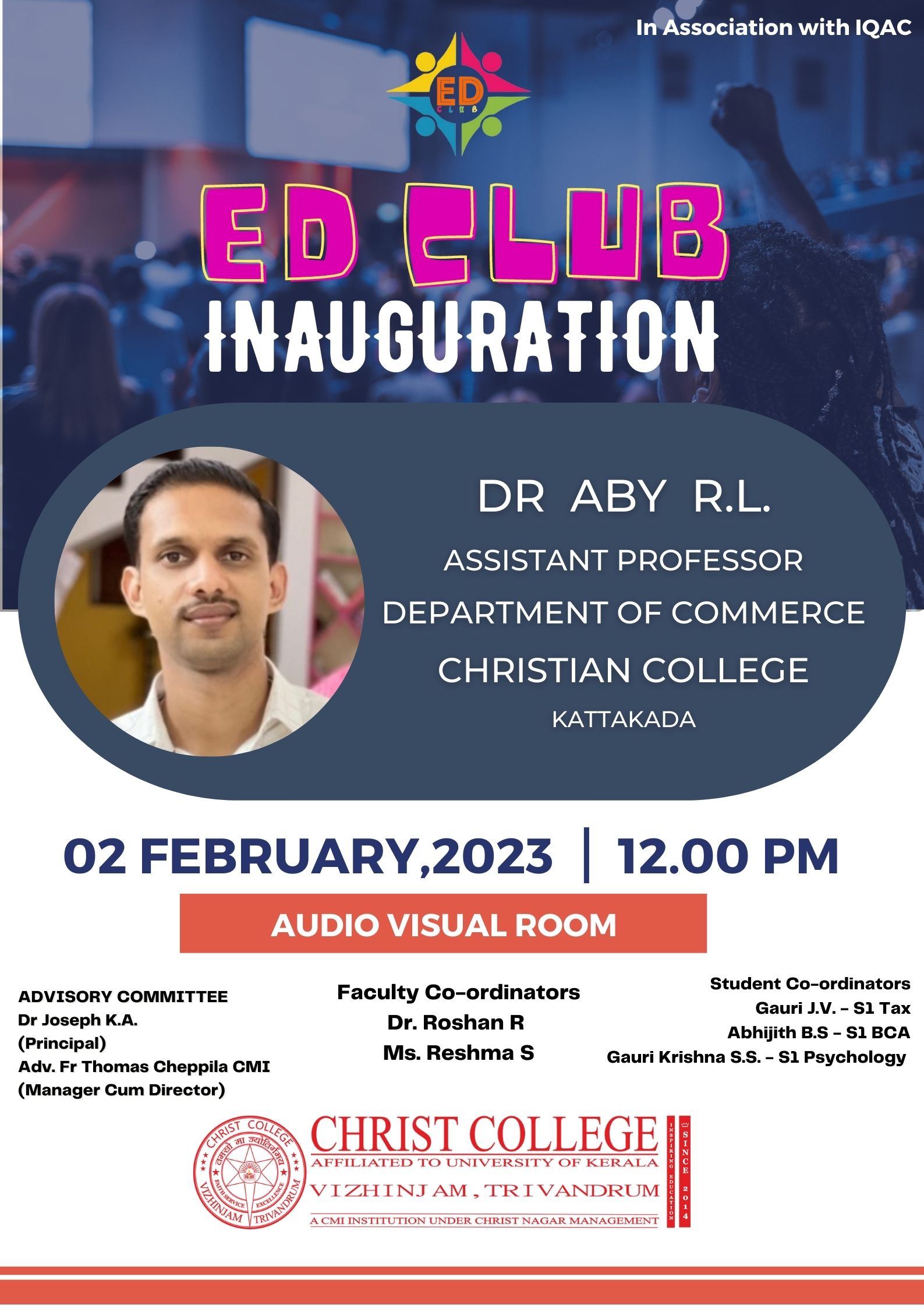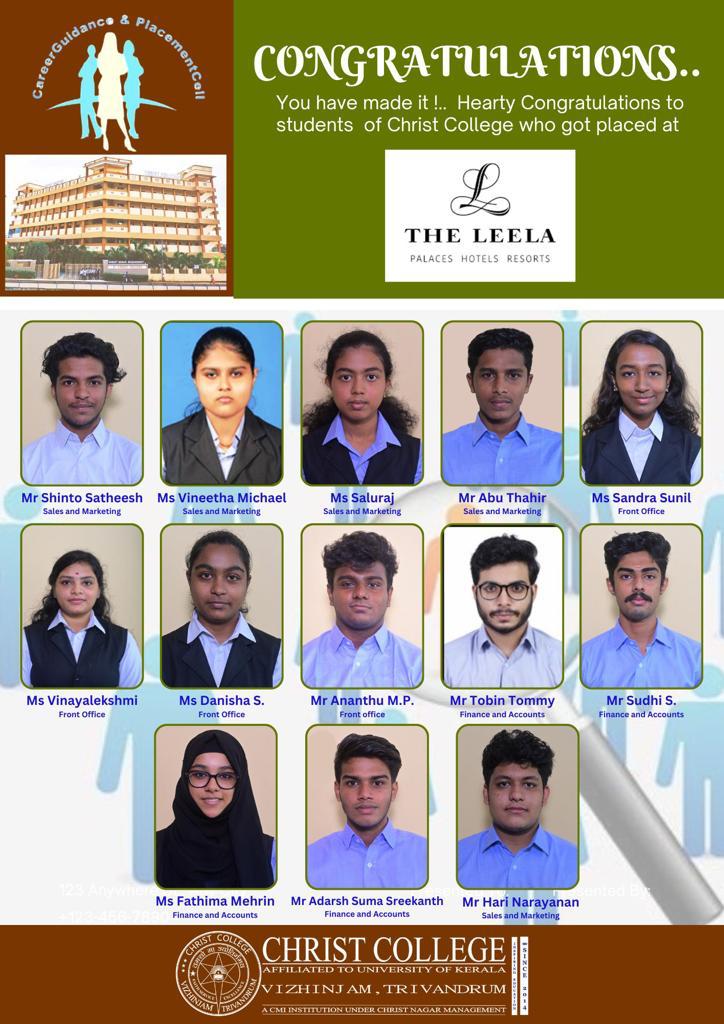 02nd March,2023 The career guidance and placement cell under Mr Govind J.S(Assistant Professor of Commerce Department of christ college Vizhinjam, in association with The Leela