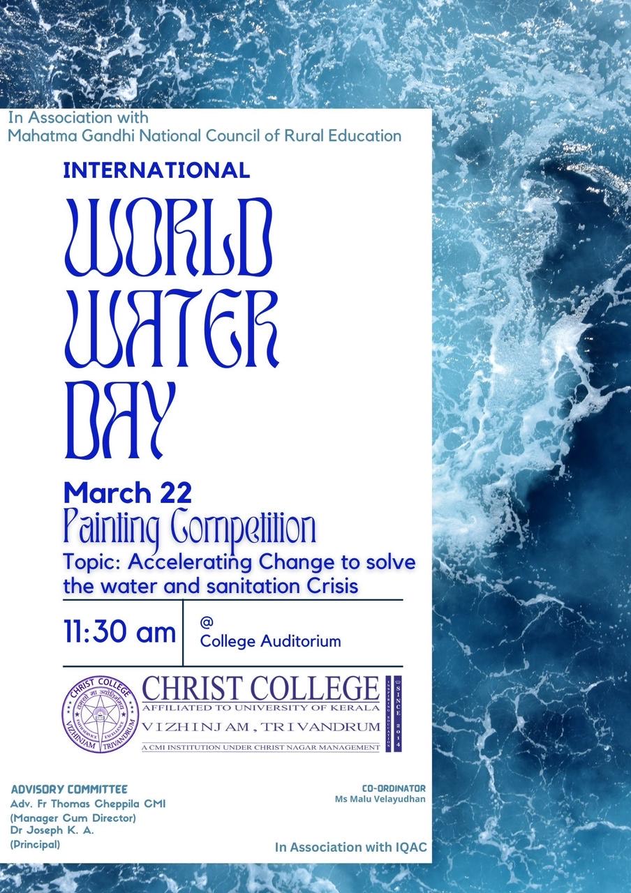 A painting competition was held, on International Water Day as part of Mahatma Gandhi National Council of Rural Education in association with IQAC. Mahatma Gandhi