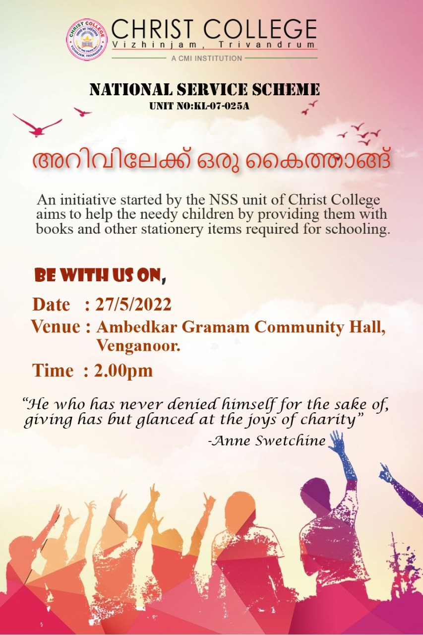 An intiative started by the N.S.S unit of Christ College distributed study materials to the needy students from ward-16 of Venganoor Grama Panchayath.