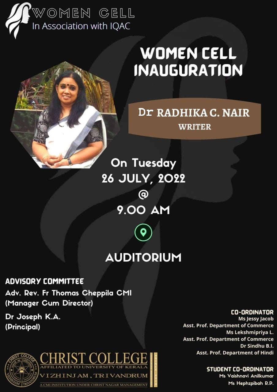 Christ College, Vizhinjam started Women Cell with the objective to create awareness among the issues relating to gender equality and sexual harassment, to help them