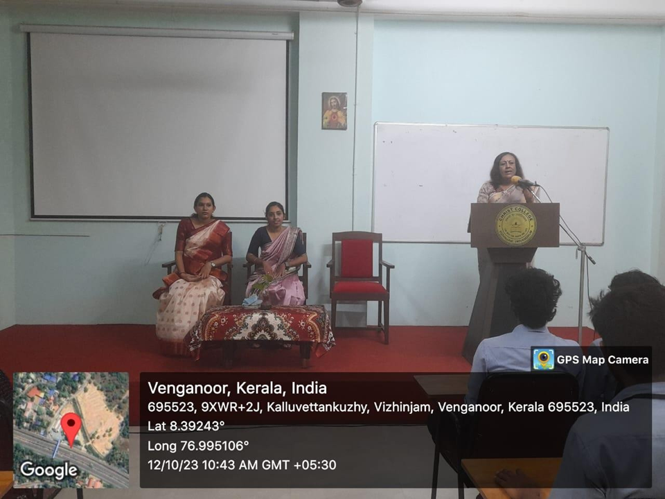 On 12th of October,we invited our Chief Guest Dr.Mridhula Nair.B who has expertised in life skill development,positive psychology, observational psychology and is a resource person for channel by A.I.R. She started her career at 22 and retired as a principal from M.G College in 2015. She continued her career at Ayyankali Memorial Arts and Science College, Pathanapuram till September 30,2023.