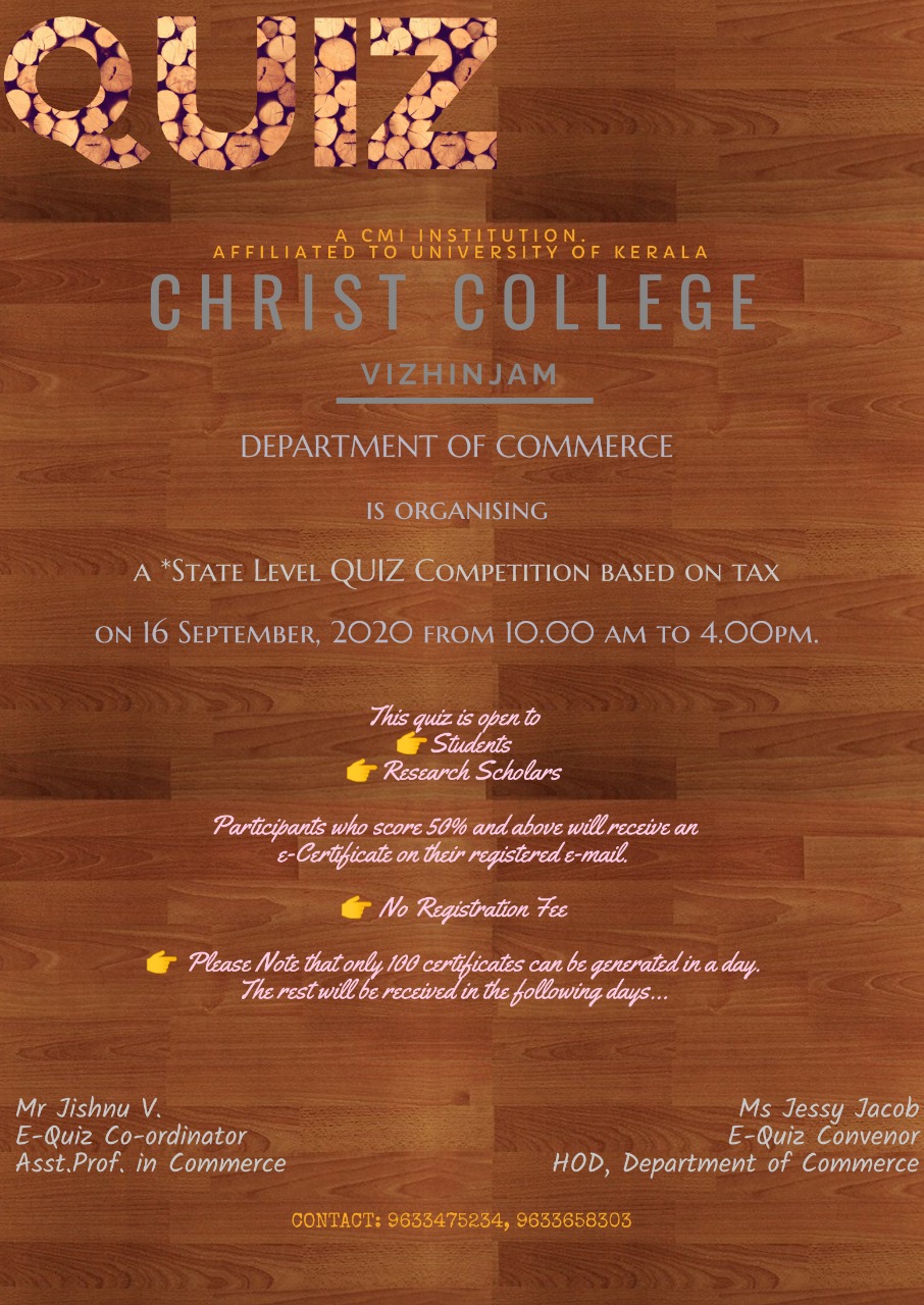 The Department of Commerce has conducted a State Level Quiz Competition on TAX on 16th September 2020. Around 300 participants took part in the competition.