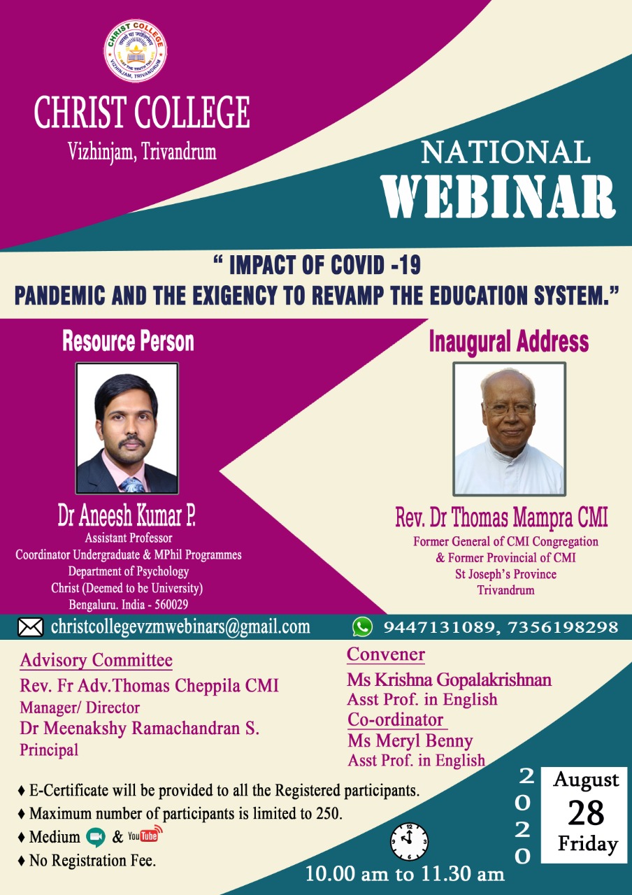 NATIONAL WEBINAR ON “THE IMPACT OF COVID-19 PANDEMIC AND THE EXIGENCY TO REVAMP THE EDUCATION SYSTEM”