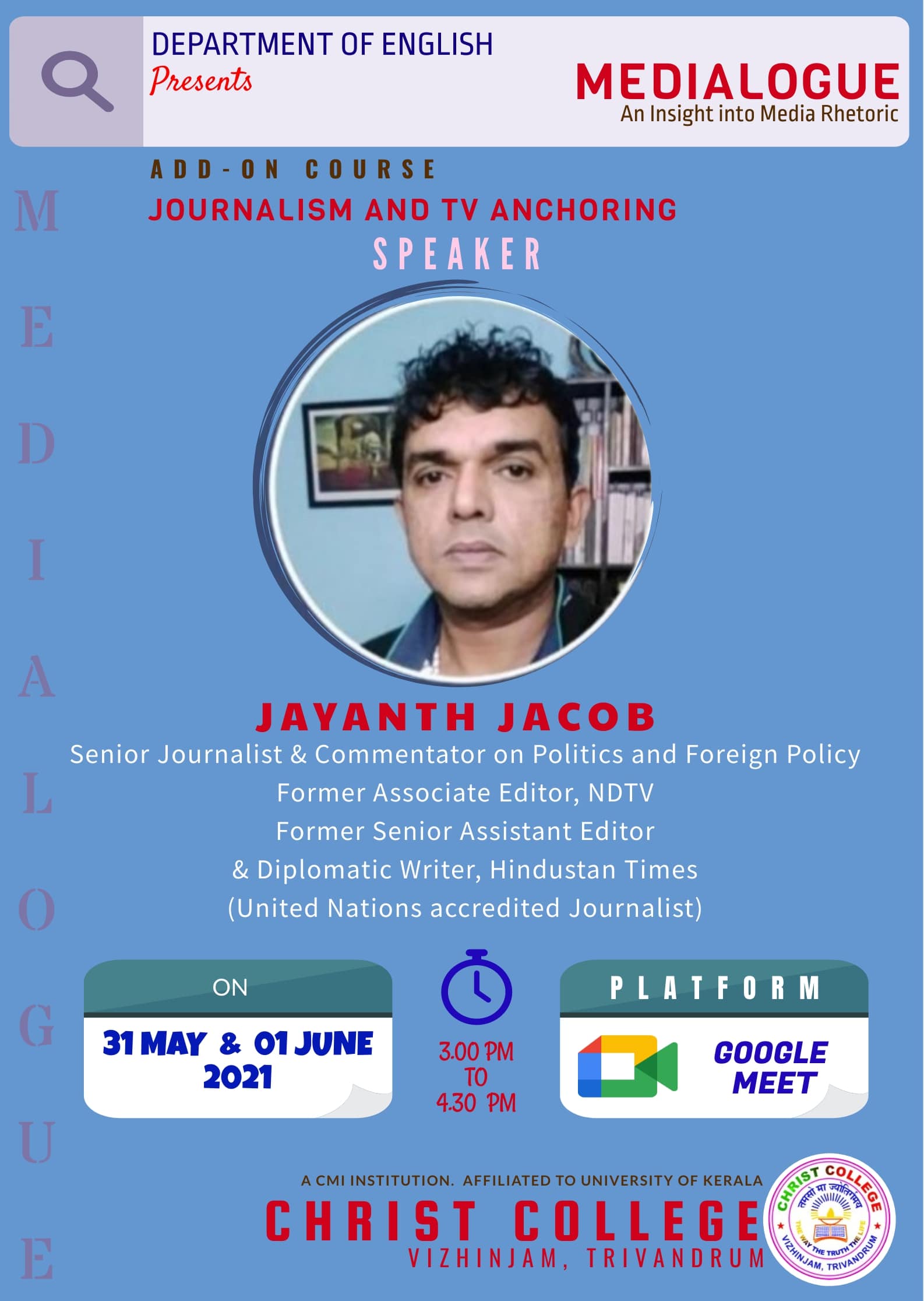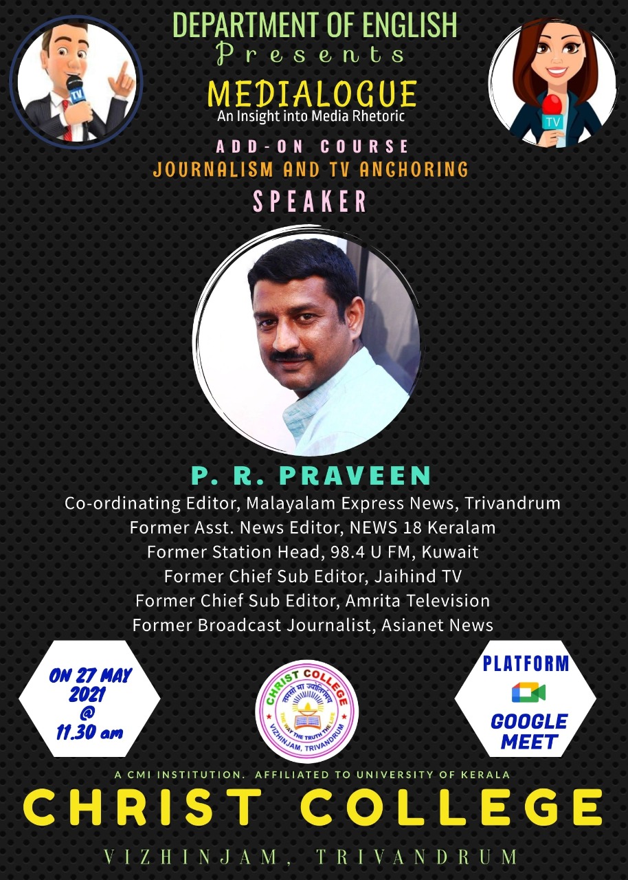 The 14th session of Medialogue, Add-on Course on ‘Journalism and TV Anchoring’, organized by the Department of English, Christ College, Vizhinjam, was held on 2nd