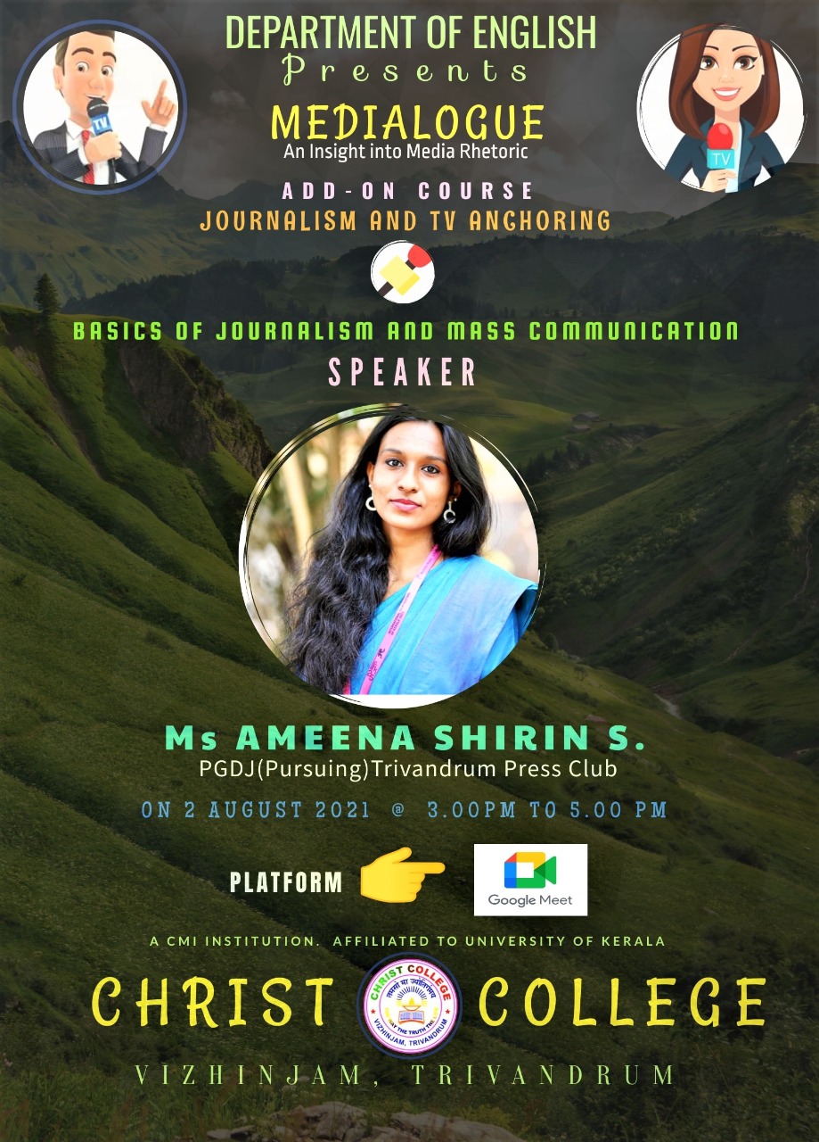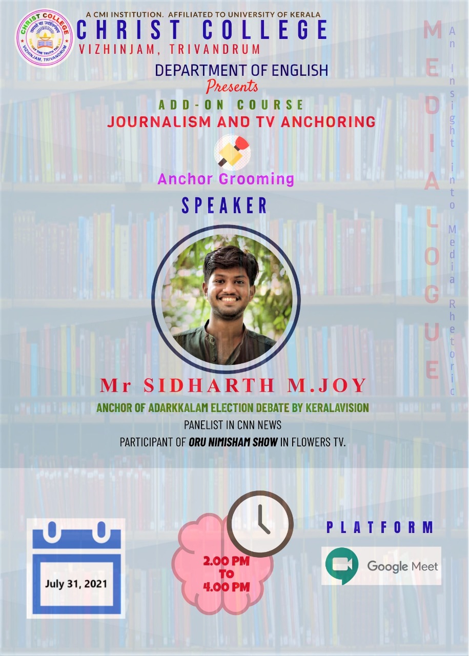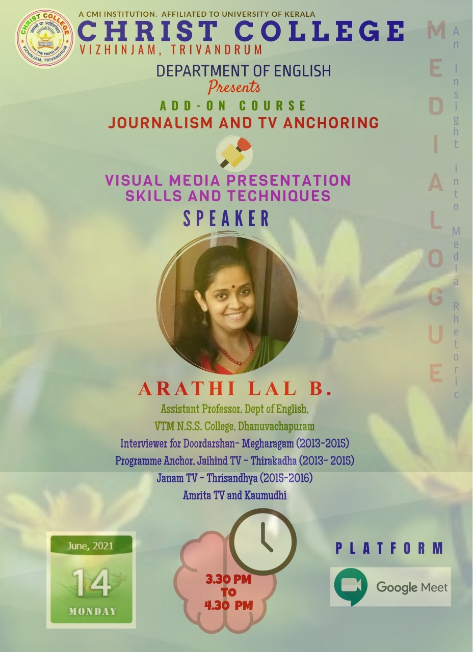 Another session of Medialogue, Add-on Course on ‘Journalism and TV Anchoring’, organized by the Department of English, Christ College, Vizhinjam, was held on 14th June