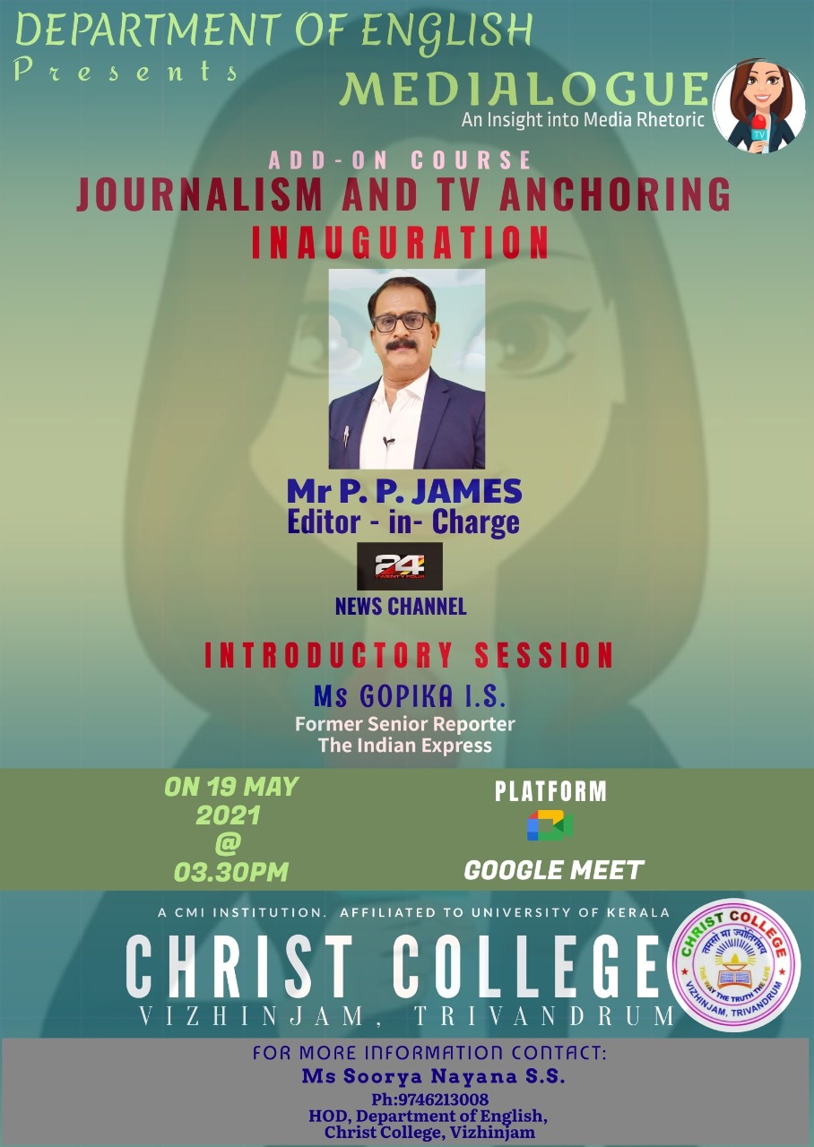 A very informative session of Medialogue, Add-on Course on ‘Journalism and TV Anchoring’, organized by the Department of English, Christ College, Vizhinjam, was held on