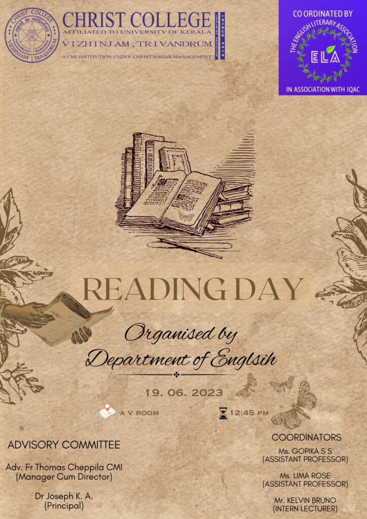 The Department of English and ELA’ 23 in association with IQAC conducted a reading competition on 19th June 2023 in connection with National Reading Day. The active participation of students made the event a grand success.