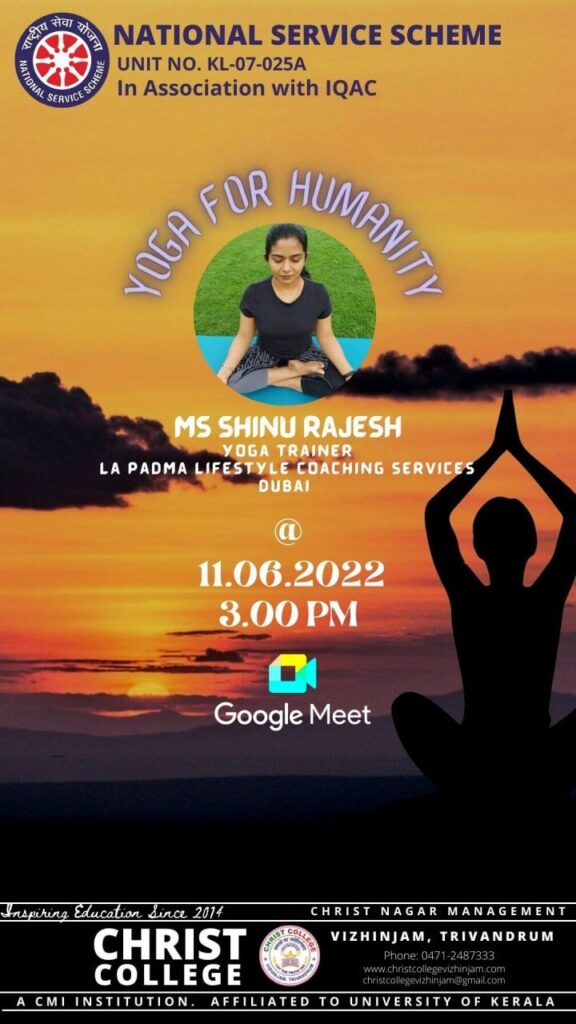 Conducted a talk with yoga trainer Ms Shinu Rajesh ( La Padma Lifestyle Coaching Services, Dubai) on the topic “Yoga For Humanity”